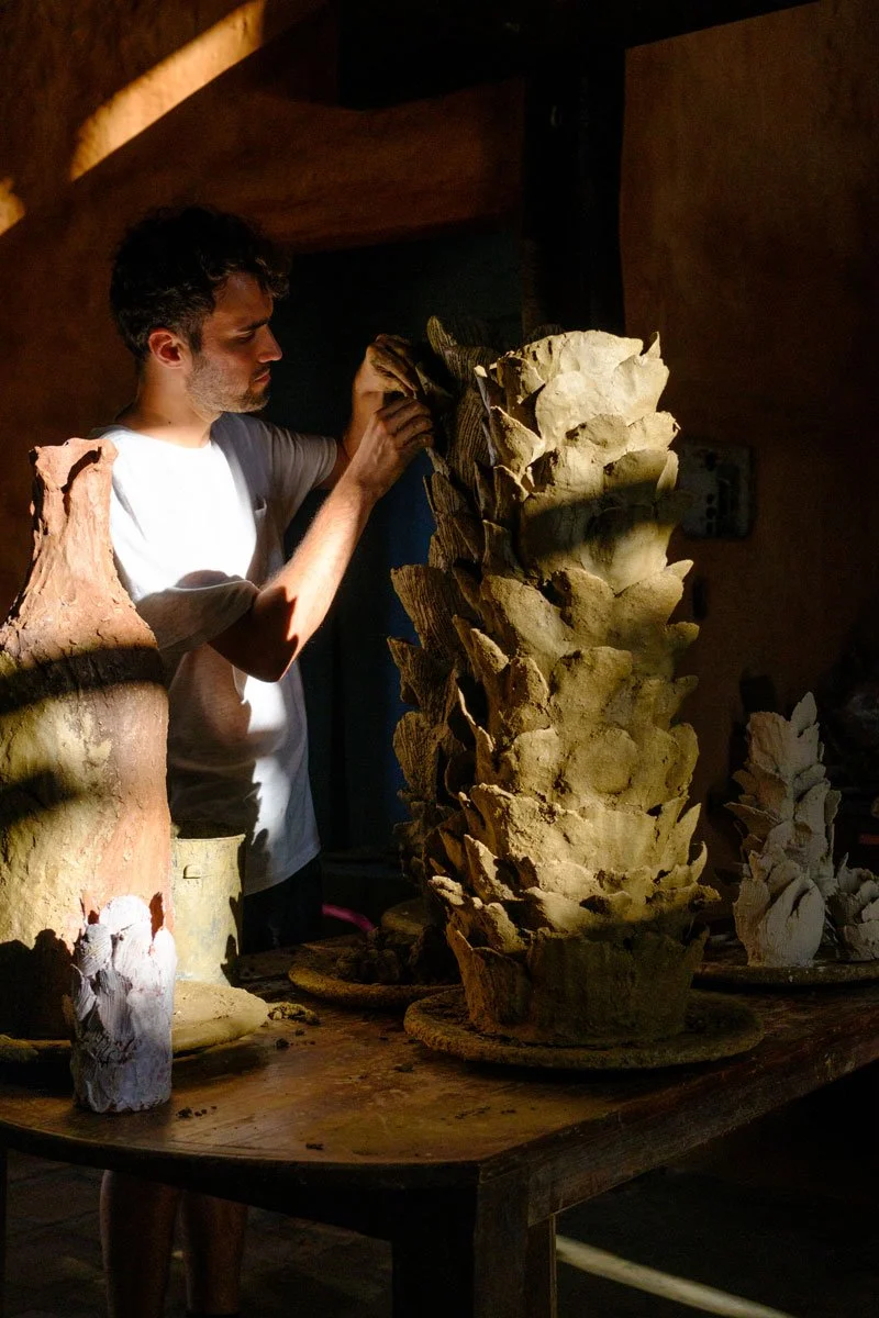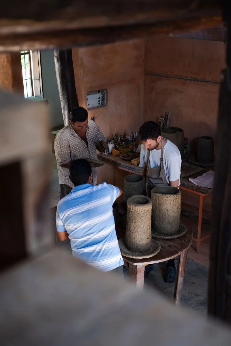 Una residencia de artista, usualmente, está centrada en el hacer; son espacios de conocimiento y manufactura. Sin embargo, el paso de este joven artista español por el Caribe y ArtesanoGroup adquirió otra dimensión. Podríamos pensar en su estadía como un ritual colectivo, porque el proceso de elaboración de la cerámica —ánforas y plantas, entre otras piezas— vinculó la quema primitiva, el traslado de las obras al mar y los momentos de meditación con el afecto que emanaba de cada uno de los espacios donde estuvo.