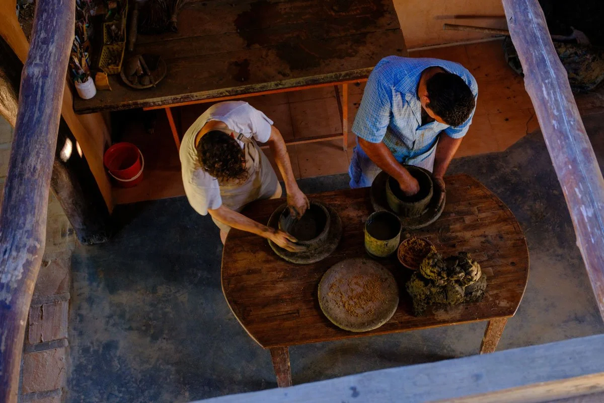 En noviembre de un año cualquiera, seis manos se hundían en el barro, el agua, la tierra. Maestras centenarias con surcos áridos en su piel, ellas, las alfareras. Hoy cantan los Juanes sus canciones que resuenan desde el ayer, silbando en los cerros, enseñando en el taller.