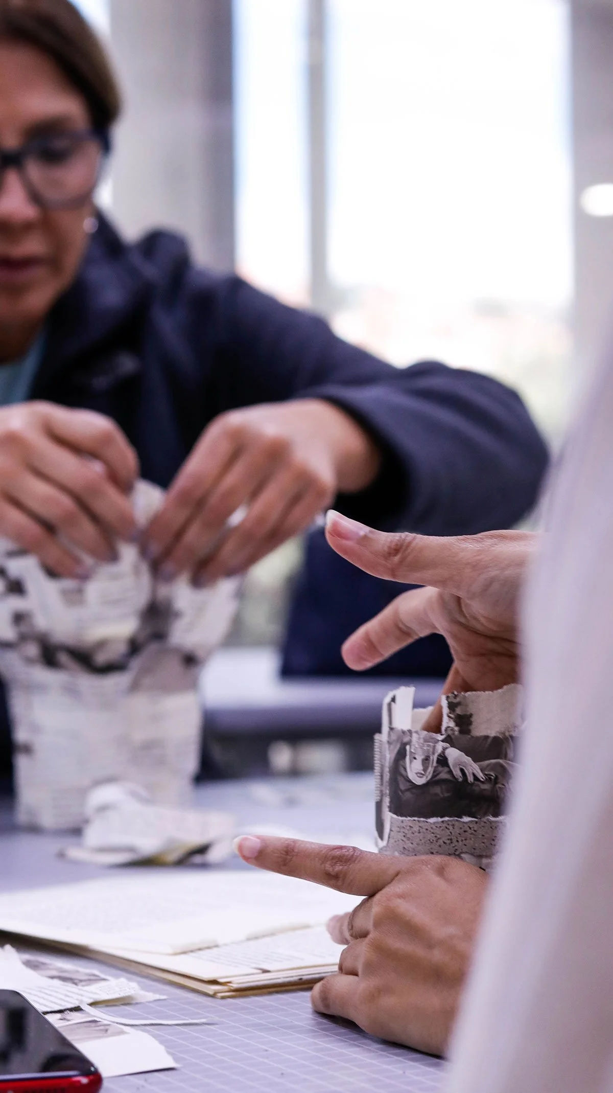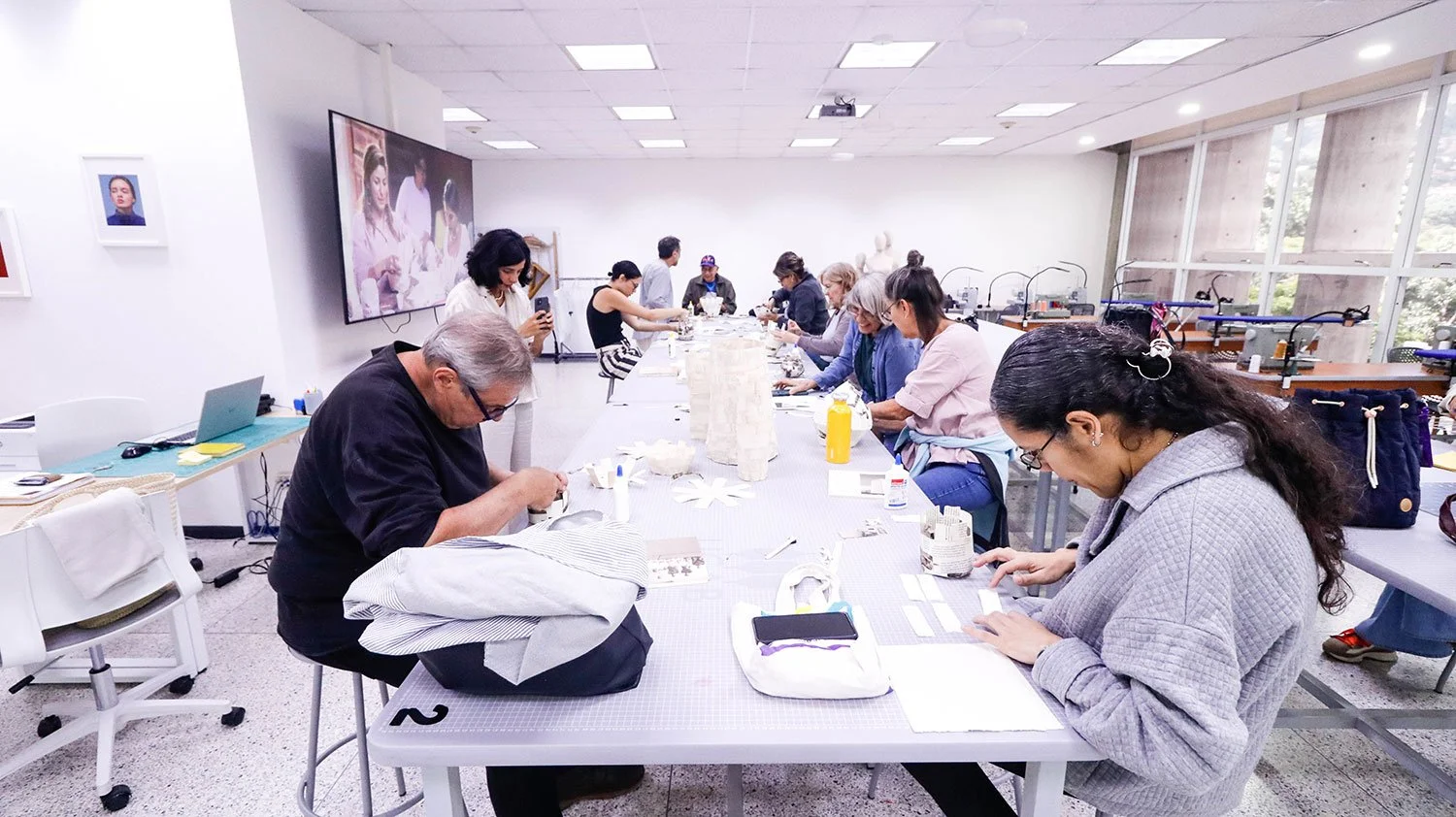 Este taller se consolidó como un espacio de exploración interdisciplinaria, donde los participantes pusieron en práctica su pensamiento espacial y tridimensional, fundamental en la construcción de objetos. A través del papel —material noble, accesible y generoso— se desarrollaron estructuras escultóricas que evocan la textura y la solidez de la cerámica, desafiando los límites entre lo real y lo aparente.